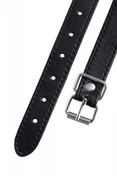 Klasyczne połączenie głębokiej czerni z metalowymi okuciami nadaje całości tajemniczy, zmysłowy charakter, idealny do odgrywania klasycznych scen BDSM.